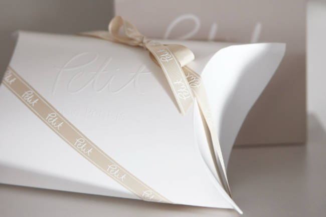 Við pökkum vörunum inn í fallega öskju með borðum og setjum skilamiða.